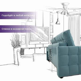 Диван Эдельвейс 1,6м велюр бирюзовый