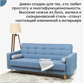 Диван Скандинавия 3 лайт А рогожка синяя