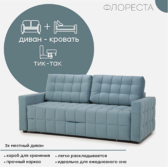Диван Флореста 3 А велюр голубой