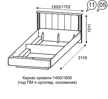 Кровать (1800) Sherlock 41 (Дуб Сонома), ГМФ