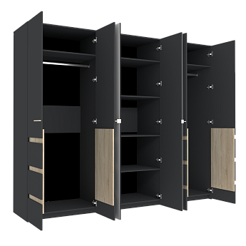 Шкаф Анона 7 для одежды и белья 6-створчатый (Антрацит/Дуб Сонома), ГМФ