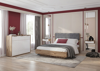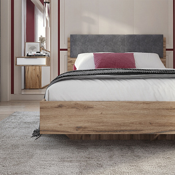 Кровать Николь 01.3К с ПМ 1600 (Дуб Альпийский/Серый), Алисия