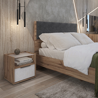 Кровать Николь 01.4К 1600 с ПМ (Дуб Альпийский/Белый