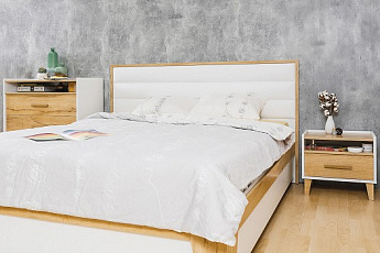 Кровать Николь 01.6К с ПМ 1800 (Дуб Альпийский/Белый), Алисия