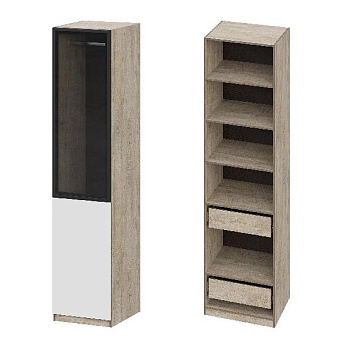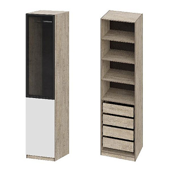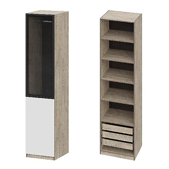 Шкаф Этна 57*100 (Софт Вайт/Стекло/Дуб Эндгрейн), Компоновка 2