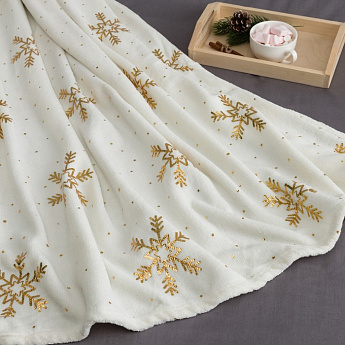 Плед Золотые снежинки белый 180*200см,корал-флис /4566527