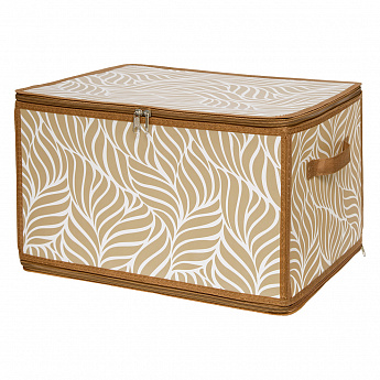Короб складной на молнии 40*30*25см Листья цв.бежевый