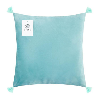 Чехол на подушку с кисточками 45*45 голубой велюр/6906466