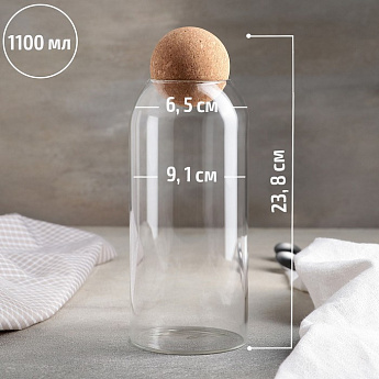 Банка для сыпучих продуктов с пробковой крышкой "Эко. Шар" 1,1 л/4708424