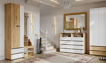 Прихожая Абрау (Дуб Золотой/Белый), FI, Компоновка 2