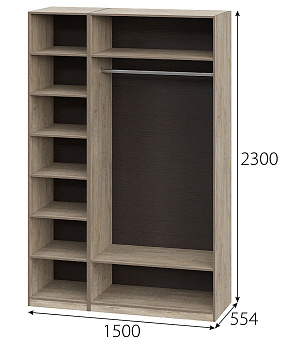 Шкаф Этна 57*150 (Софт грей/Дуб Эндгрейн), Компоновка 1