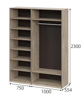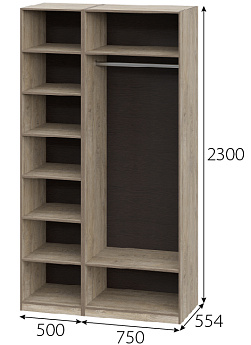 Гардеробная Этна (Софт Грей/Дуб Эндгрейн), комплектация 8