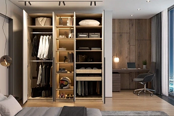 Гардеробная Этна (Софт Грей/Дуб Эндгрейн), комплектация 6