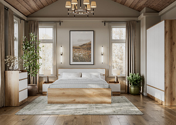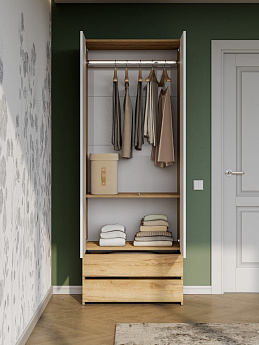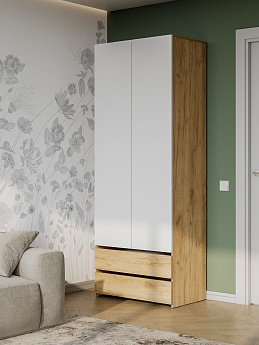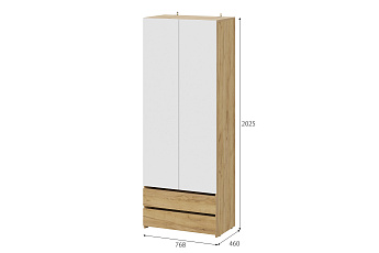 Шкаф двухстворчатый (с ящиками) Абрау (Дуб крафт золотой/Белый), FI