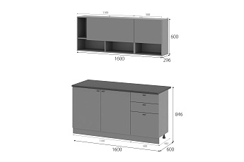 Кухонный гарнитур Энни (1,6м) (Черный/Графит серый), FI